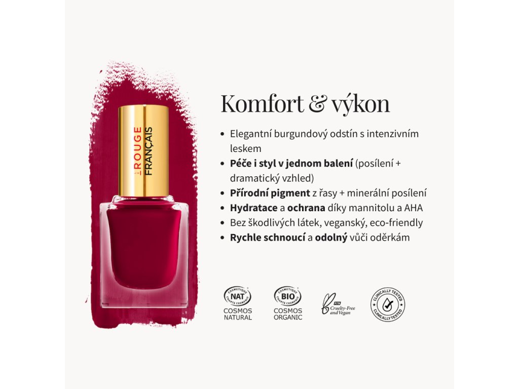 - Odstín: intenzivní burgundový s rubínovým podtónem