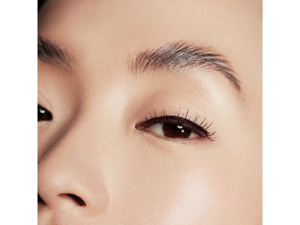 Umístěte štěteček do středu linie řas a přejeďte oční linkou podél vnějšího koutku oka. Poté začněte od vnitřního koutku oka a nakreslete další čáru a spojte s první. Dokončete protažením do vnějšího koutku pro vzhled kočičích očí. Jemný, kónický štětec je ideální pro přesné, rovnoměrné nanášení.