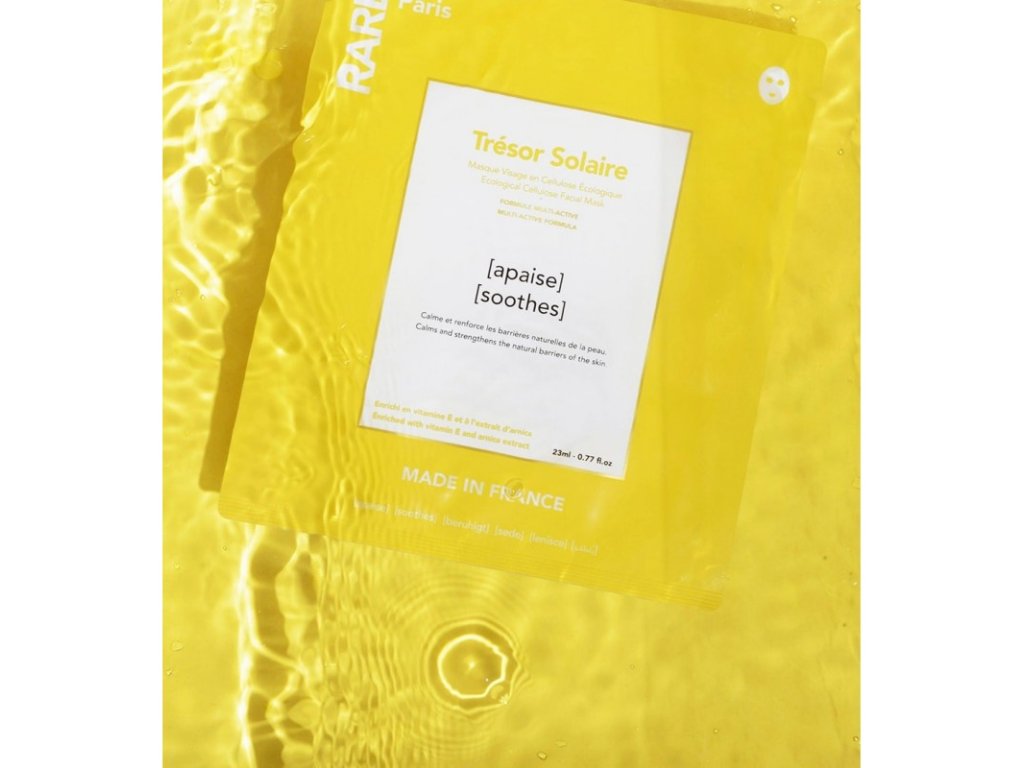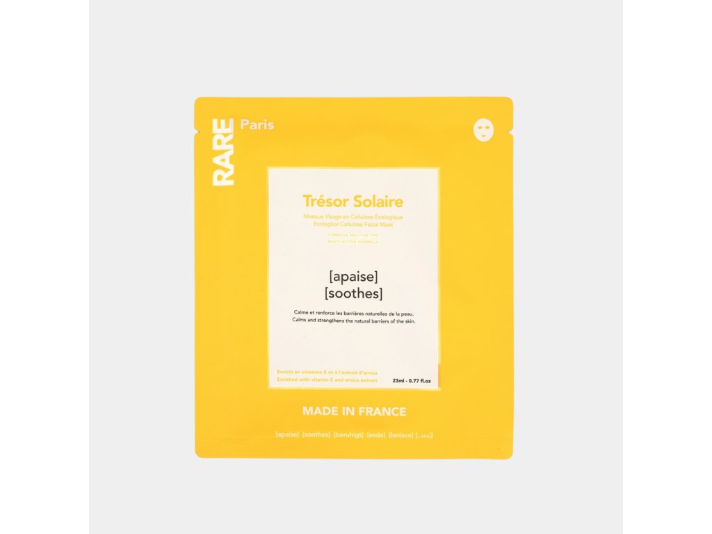 Trésor Solaire je luxusní textilní maska, která okamžitě zklidňuje a regeneruje pleť vystavenou stresu, slunci, chladu nebo znečištěnému ovzduší. Díky vysoké koncentraci aktivních složek poskytuje okamžitou úlevu a viditelně zlepšuje vzhled pleti.