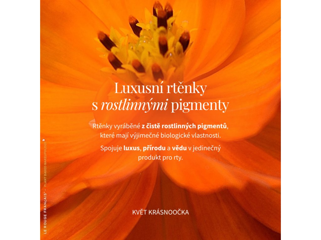 - Kosmos oranžový – přírodní pigment inspirovaný tradičními barvivy