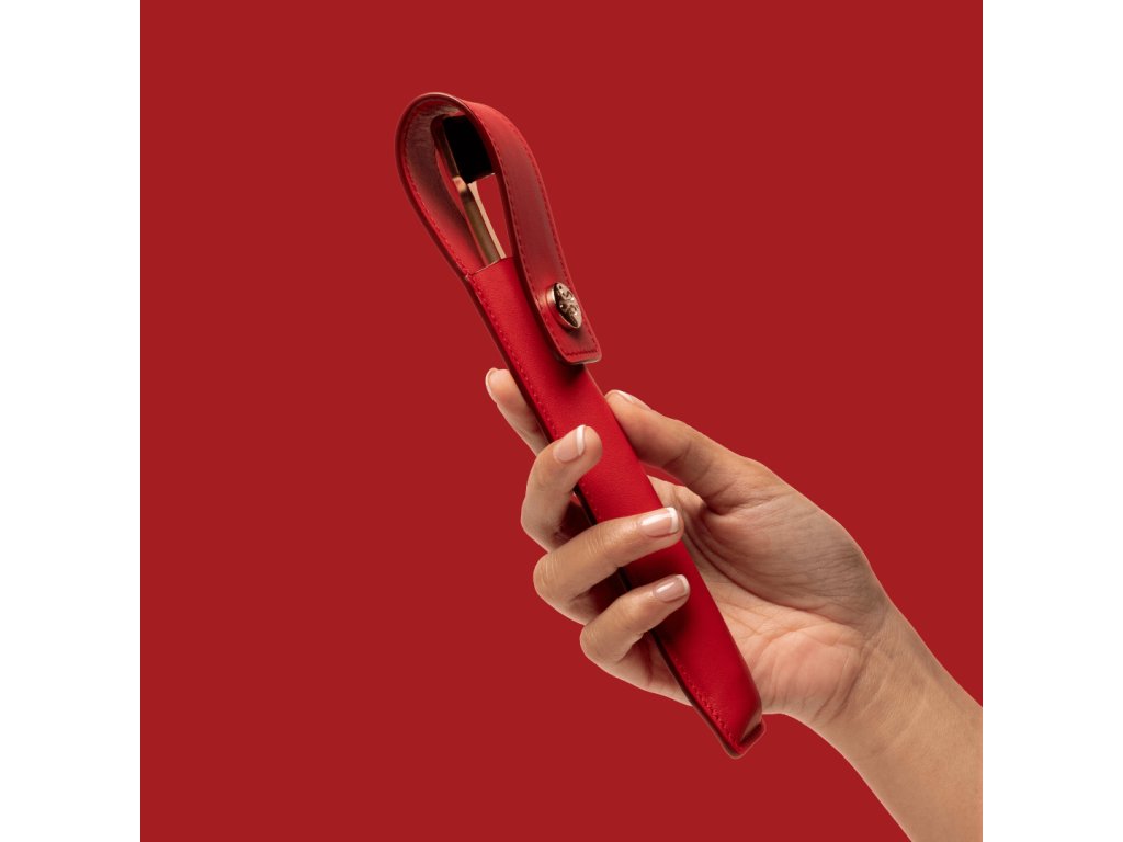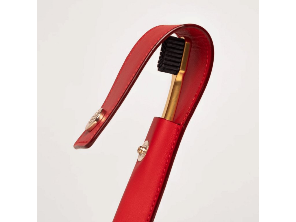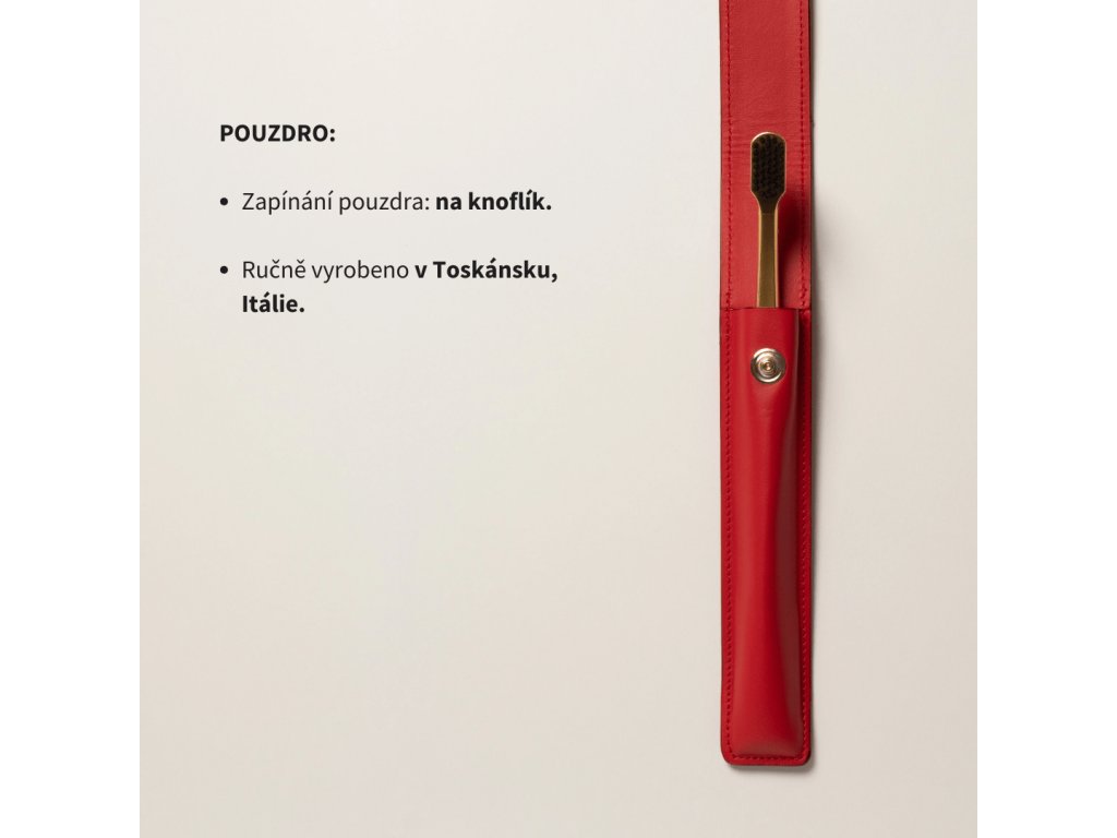 Zlatý kartáček s černou hlavicí a červeným koženým pouzdrem Leather Case Button/Red & Toothbrush - Soft