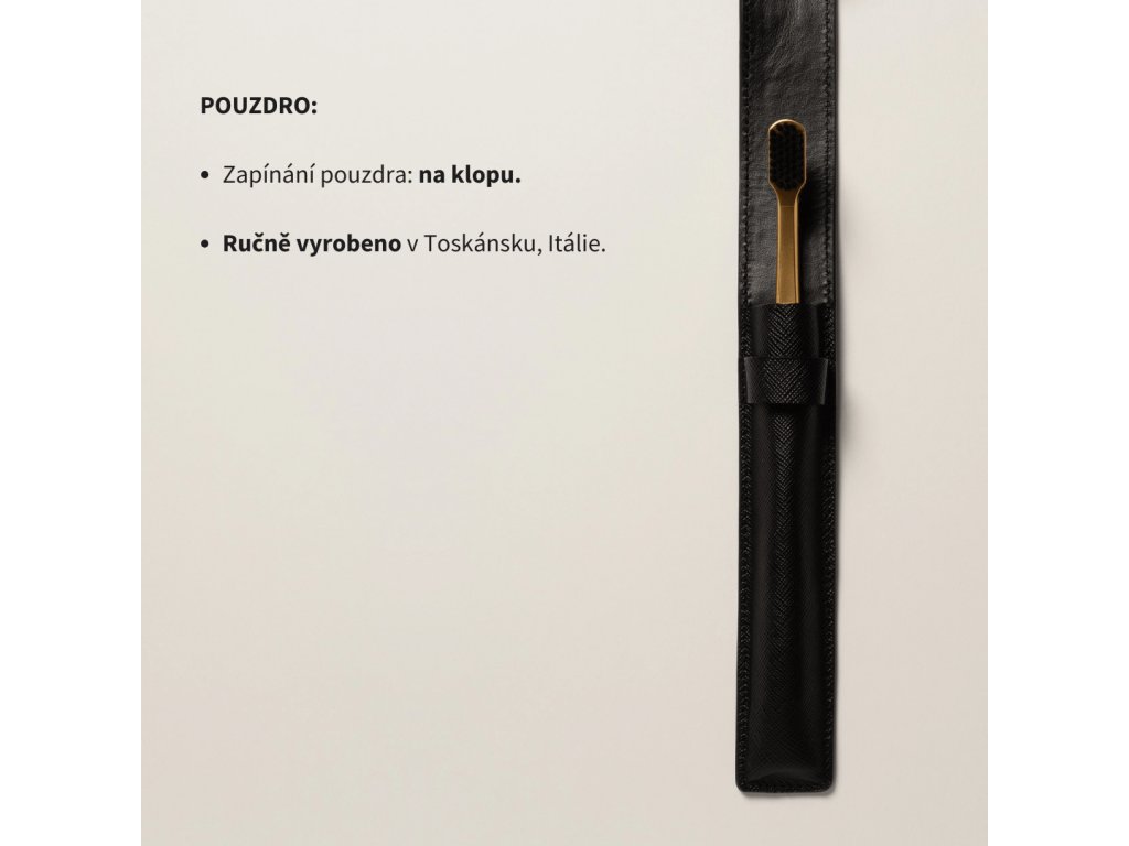 Zlatý kartáček s černou hlavicí a černým klopa koženým pouzdrem Leather Case Flap/Black & Toothbrush - Soft