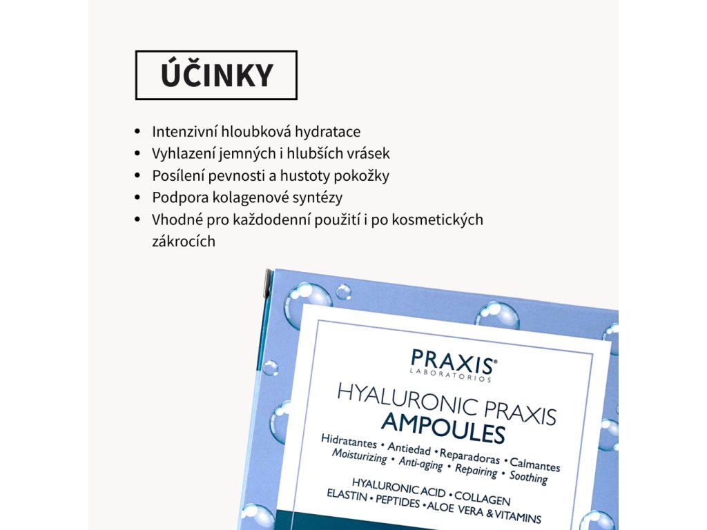 Kyselina hyaluronová (Hyaluronic Praxis) – intenzivní hydratace všech vrstev pleti