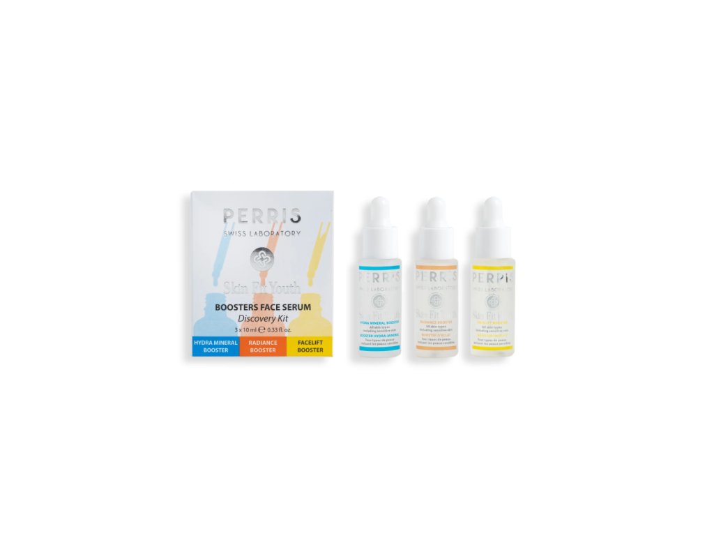Objevte sílu profesionální pleťové péče s exkluzivním balíčkem tří ikonických boosterů Perris Swiss Laboratory. Hydra-Mineral Booster, Radiance Booster a Facelift Booster společně poskytují maximální hydrataci, sjednocený a projasněný tón pleti a viditelné zpevnění kontur obličeje.