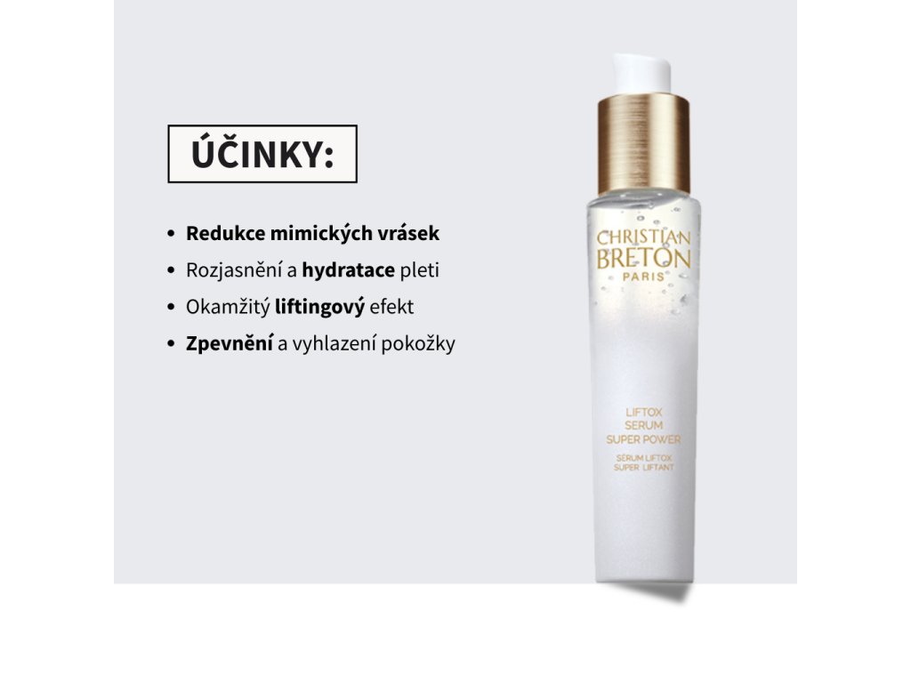 Liftingové sérum Liftox Serum Super Power od Christian Breton je vysoce účinná péče o pleť navržená pro okamžitý lifting a redukci mimických vrásek. Je ideální pro ženy, které chtějí dosáhnout mladistvějšího vzhledu bez invazivních metod.