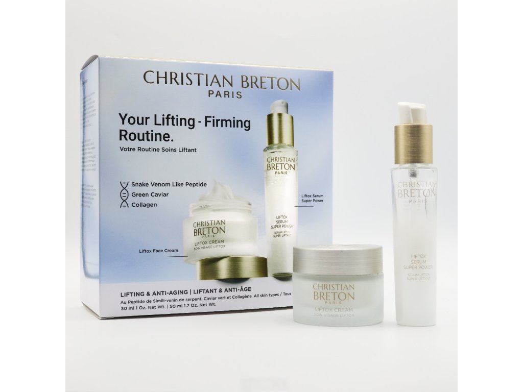 - Obsah balení: Liftingové sérum s efektem botoxu Liftox Serum Super Power (30 ml) + Liftingový krém proti mimickým vráskám s peptidy a kaviárem Liftox Cream (50 ml)
