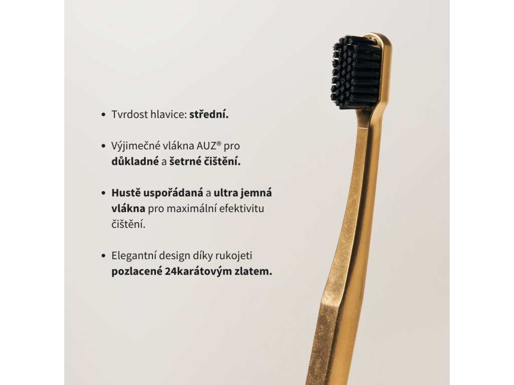 Zlatý zubní kartáček – černá středně tvrdá hlavice Toothbrush Gold/Black Medium