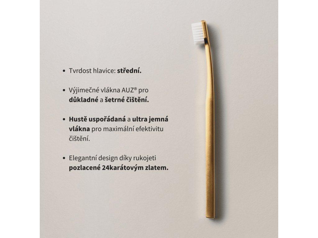 Zlatý zubní kartáček – bílá středně tvrdá hlavice Toothbrush Gold/White Medium