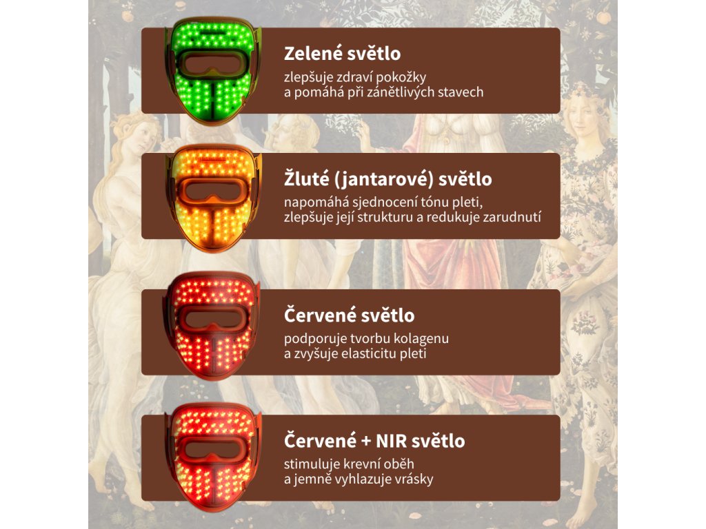 Kombinace červeného a NIR (blízkého infračerveného) světla stimuluje krevní oběh a jemně vyhlazuje vrásky.