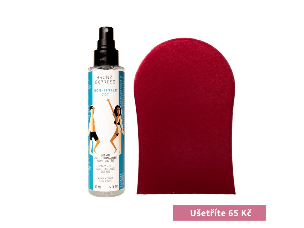 - Obsah balení: 1× Samoopalovací mlha Bronz’Express Non-Tinted, 1× Aplikační rukavice na tělo i obličej