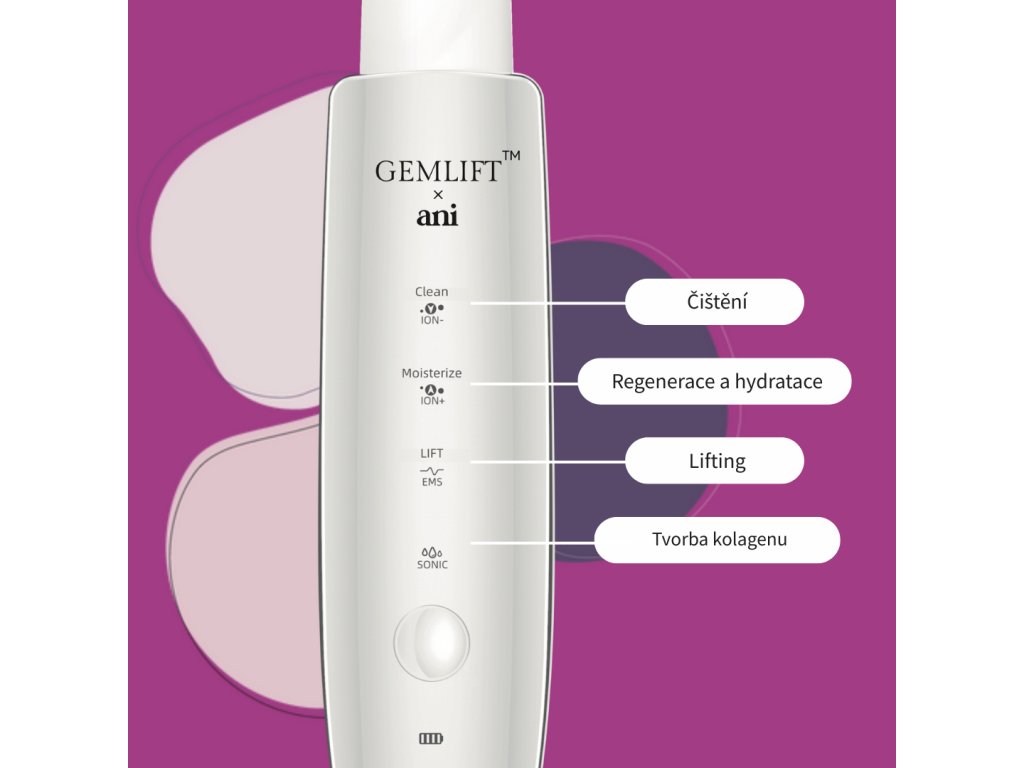 - Obsah balení: Ultrazvuková špachtle 4v1 GemLift x Ani, Hydratační ampule s proteoglykany proti vráskám – 24 ks