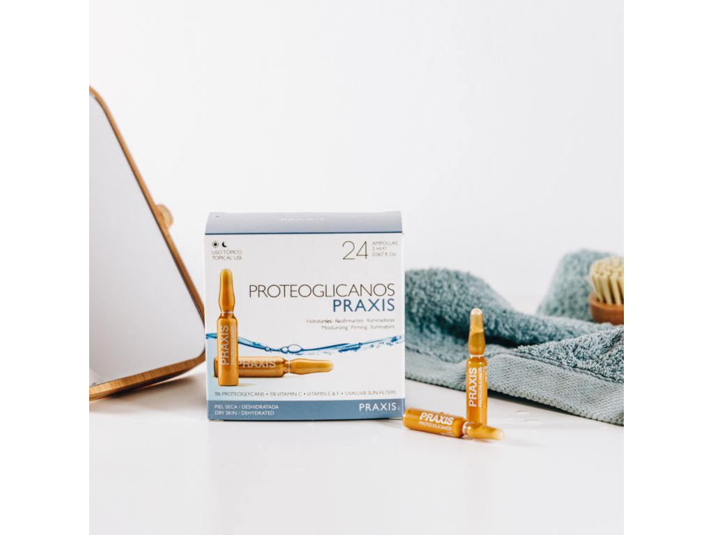 - Ampule: 3 % proteoglykany pro regeneraci a pevnost, 5 % vitamín C pro jas, SPF 15 proti fotostárnutí