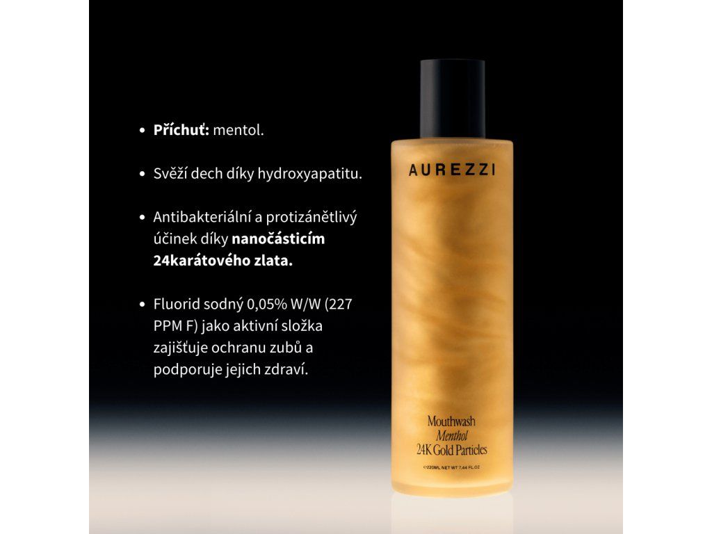 - Mentolovou ústní vodu s nanočásticemi 24karátového zlata
