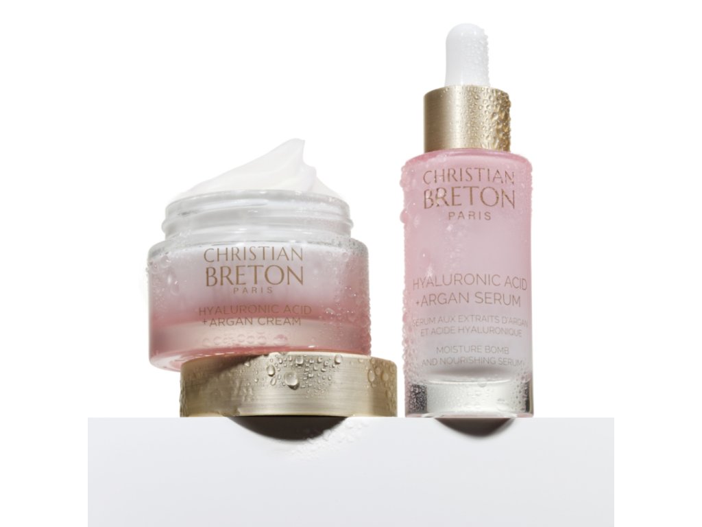 Sérum s kyselinou hyaluronovou a arganovým olejem okamžitě hydratuje a vyživuje, zatímco krém chrání pokožku před vnějšími vlivy a posiluje její obranyschopnost. Allantoin, vitaminy A a E zklidňují citlivou pleť a podporují její regeneraci.